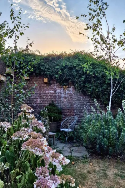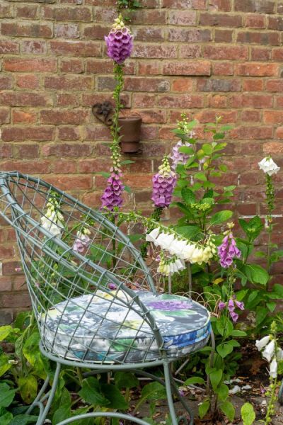 This is the option we finally went for. I bought some second hand chairs from a friend and had outdoor cushions made for them. We have let some flowers self-seed themselves amongst the pavers and have planted two new silver birch trees. And we’ve also added some nesting boxes on the wall.