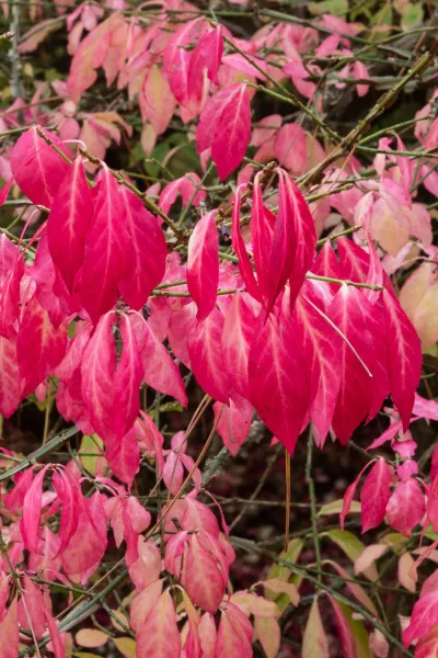 And ask what time of year you want the colour? Taking that there is good summer colour elsewhere in the garden, I think that it would be good to consider shrubs with spring blossom and autumn colour. I saw some beautiful winged spindle (Euonymus alatus) when I visited Gravetye Manor Gardens last year. The RHS tells me it is suitable for north-facing walls, although once again it may not have the best display in this position.