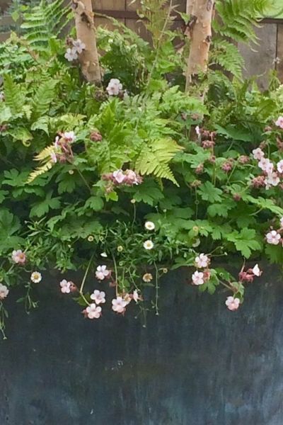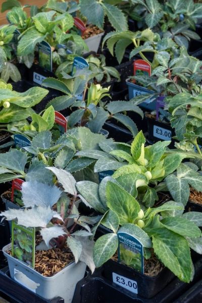 Jane chose the pale blue grey of Hellebore ‘Silver Dollar’ along with a similar shade of Festuca glauca for her pots and window boxes.