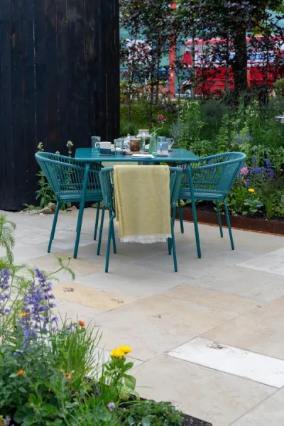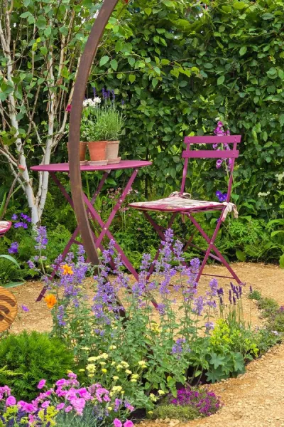 More top garden ideas to look out for included coloured furniture. With the increasing popularity of natural or wilder-looking gardens, coloured furniture adds definition and contrast.