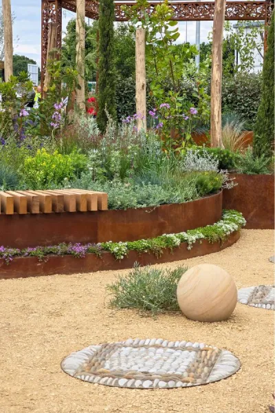 Corten steel has been around for a few years now, but it works beautifully in either contemporary or naturalistic gardens. It has the strong lines for modern design and the weathered texture for the natural look.