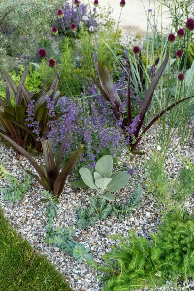 However, most garden designers advise you not to use weed-suppressant membranes beneath the gravel mulch. It used to be standard practice to lay these under gravel, but they always ruck up. Weeds wriggle out from under the membranes and land on top. And it stops perennial plants from spreading naturally.