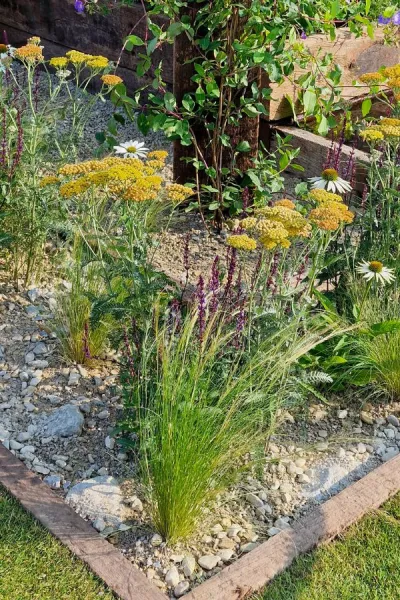 Carol Klein did some exceptionally pretty planting on her RHS Iconic Horticultural Hero garden at RHS Hampton Court 2023. She used shingle and gravel as mulches around ‘tough drought-tolerant species.’ Carol also used plants grown entirely by UK nurseries, which is another growing trend to minimise ‘plant miles’ and the risk of transmitting plant diseases over long distances.