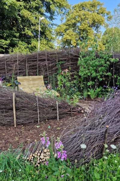 The RHS Wisley team designed this ‘dead hedge’ as a wildlife friendly garden screen.