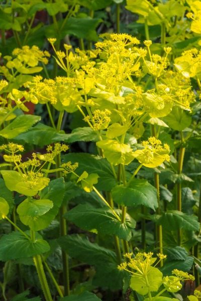 Smyrnium perfoliatum is one of my favourite plants for shade in my partial shade border, flowering in late spring and early summer, then disappearing after that. It’s a biennial so it doesn’t flower its first year, but it self seeds prolifically, so it is easy to grow.