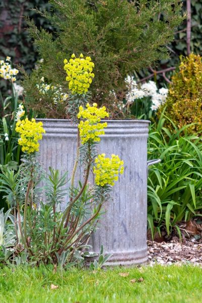 There are so many choices! Mediterranean spurge of (Euphorbia characias ‘Wulfenii’) is a star in the shadier parts of my garden throughout spring. It spreads, but isn’t too invasive, so I find it very easy care.