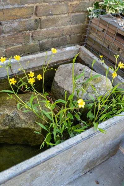 Jane Beedle made her container pond from a galvanized steel agricultural trough. You can buy them new, such as this one from Amazon, but Jane was given a second-hand one by a farming friend.