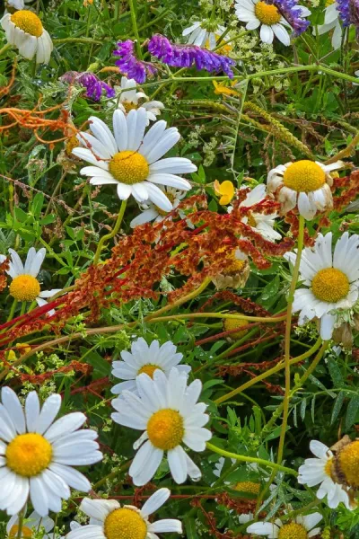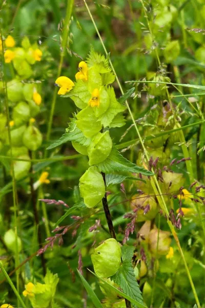 If you want to grow wildflowers in a lawn or field, you’ll need to either remove the grass or weaken it with yellow rattle (Rhinanthus minor).
