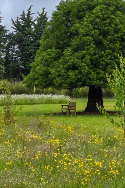 Sarah and Dan Kennedy have a large field adjacent to their garden. They wanted to do something special with it. ‘The soil is a mixture of clay and chalk’, says Sarah. ‘Taking that chalk meadows are in decline, we decided to use the space to create wildflower meadows and woodland.’