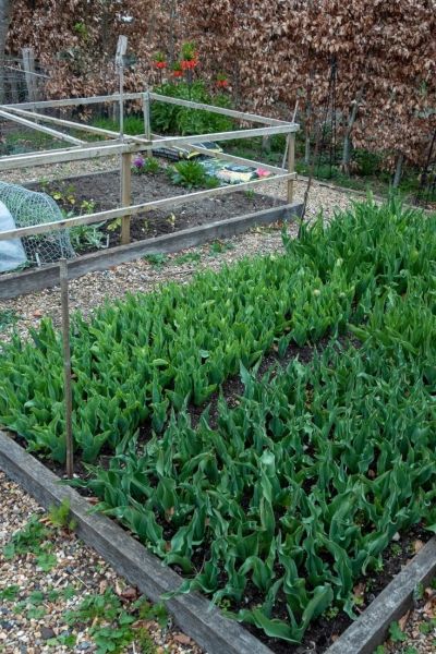 ‘We place them closer together than the manufacturers recommend,’ she says. ‘We leave about a tulip bulb’s distance between each tulip bulb. And it’s very important to avoid the tulips touching each other.’