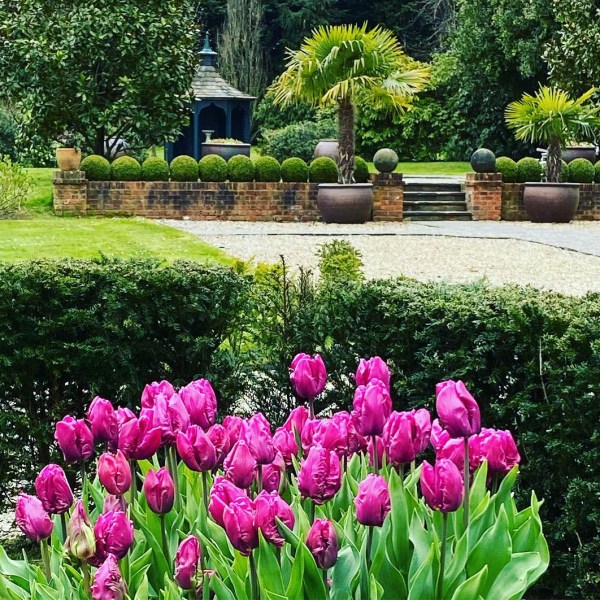 Ulting Wick, a garden in Essex which opens for the National Garden Scheme, is famous for its tulips. Philippa Burroughs and the head gardener plant around 12,000 tulips in January. ‘As long as they’re all in by the end of January, that’s fine by us,’ says Phillipa.
