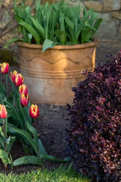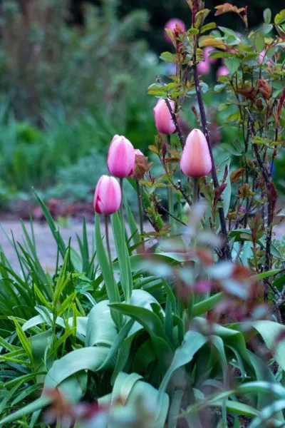 Grow tulips with perennials and shrubs