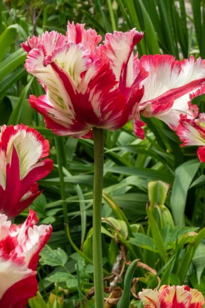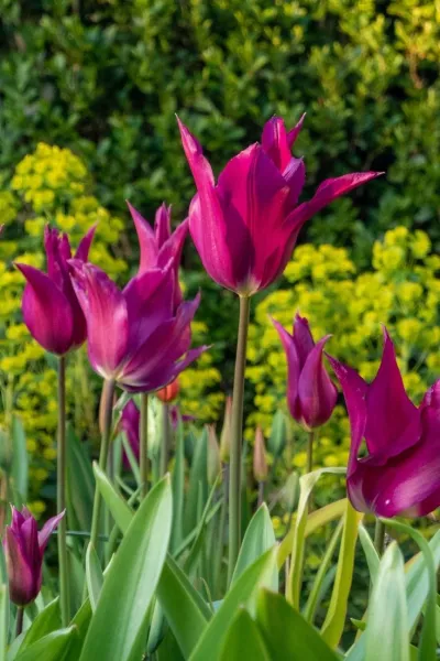 You can also grow tulips in herbaceous borders to add colour. As the emerging leaves of perennials begin to cover the soil, tulips add splashes of brightness.