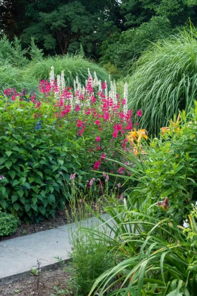 William likes to contrast them with ornamental grasses and he has lots of species of miscanthus at Great Comp.