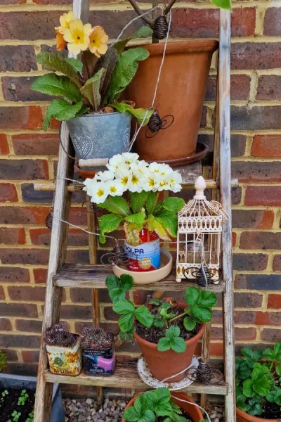 If someone’s throwing something away, Jo is often happy to give it a home. She has two ladders that belonged to a client. He didn’t want them and she now uses them to display plants.