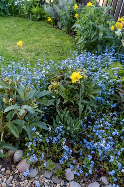 Transform your garden with big blocks of colour from easy-to-grow plants, such as these forget-me-nots, which self-seed.