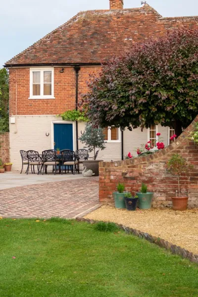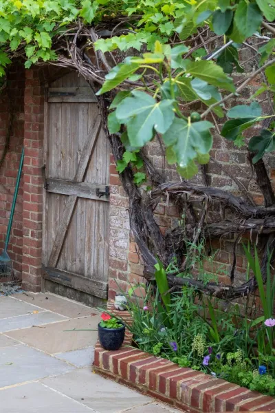 The walled garden behind the house used to be the farm kitchen garden, so it was concealed with high walls.