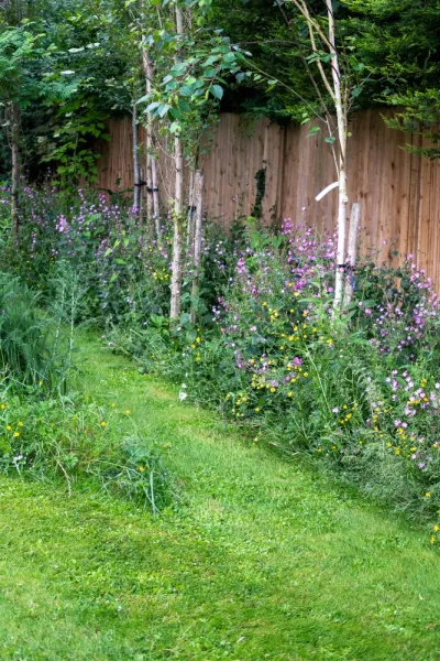 Natalie and Mike planted a wildflower meadow down one side of the walled garden, but one end of it proved to be too shady for the wildflowers they’d chosen. ‘So we decided to have a curving swathe of wildflowers at one end instead of a strip all down the garden,’ says Natalie. It actually looks beautifully natural like that.
