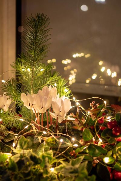 Jane thinks that it’s particularly cheering to add battery-powered fairy lights to winter pots and window boxes. If you buy them with a timer, you don’t even have to remember to switch them off.